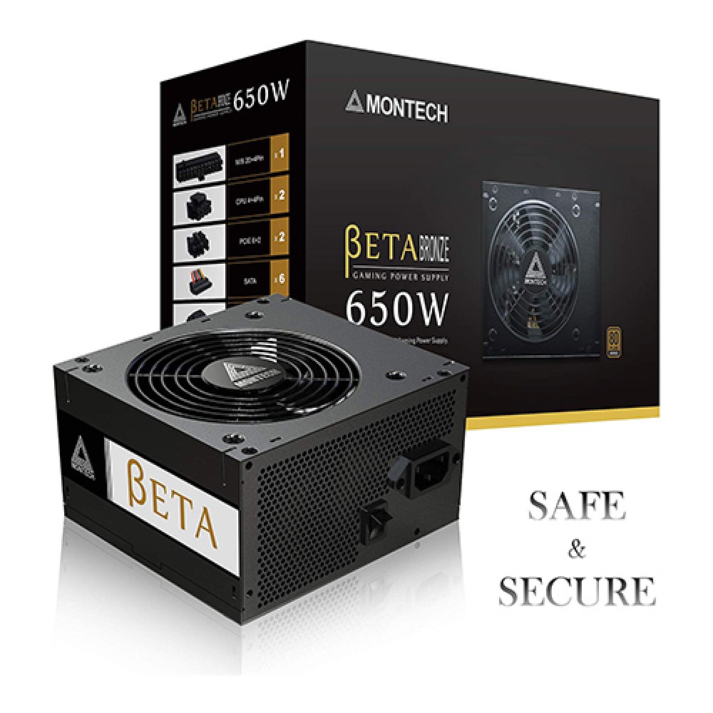 The Montech Beta 650W 80+ Bronze Certified Japanese Capacitors Continuous Power Supply offers a reliable and stable power solution for mid-range to high-end gaming PCs and workstations. Its 650W capacity caters to demanding systems, while the 80+ Bronze certification ensures decent energy efficiency. With an estimated price of 6,300 Taka at universal.com.bd, it's a contender for builders in Bangladesh seeking a balance between performance and affordability. We Provide 3 years guaranty for this Bronze Certified Japanese Capacitors Continuous Power Supply. Also you can buy this Bronze Certified Japanese Capacitors Continuous Power Supply from our online website and get home delivery facilities. We also provide EMI facilities. So, why wait trust us and go to our website and buy your desire Bronze Certified Japanese Capacitors Continuous Power Supply from us.